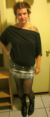 ~LOve this longish wool skirt ......It is made from vintage fabric that is AMAzing. It has an elastic waist and would look be perfect over a vintage silk slip and a sheer blouse. THe Tshirt is my boat neck altered just a bit at the neck for a more casual less shoulder bearing look!